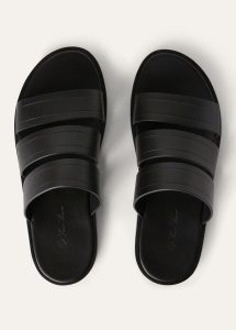 This elegant sandal is crafted from soft calfskin leather with a subtle embossed pattern for a contemporary touch. Soft, lightweight